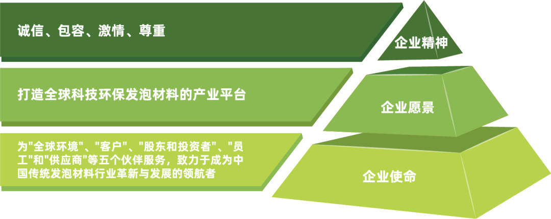 润阳科技基于“企业使命”、“企业愿景”和“企业精神”等理念体系,以技术先行重点产出环保价值。目标是集合企业成员力量共同应对环境问题,积极为全球市场提供安全、健康的环保发泡材料,从而成为具有标志性的可持续发展型企业。