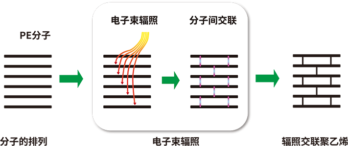 以聚乙烯树脂为基料,配同辅料进行熔融共混,通过电子交联加工技术,改变分子交联结构,提高发泡材料强度。